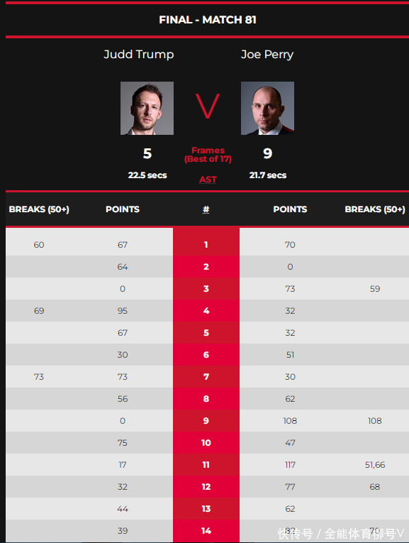 算作排行赛2冠王的佩里,2022年是其工作生活的最高光技巧,他在阿谁赛季的全国斯诺克欧洲系列赛第7站威尔士公开赛的较量中,发达极其出色,他一王人过五关斩六将打进决赛。事实上,那次比赛之前,他根柢就被无视,所有这个词赛季发达低迷。