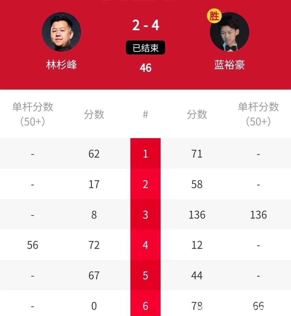 第二个比赛日凌晨场,江俊、龙泽煌、蓝裕豪、姚一又成等四名中国选手出战。比赛效用,江俊以4-1的比分疲塌驯顺龙泽煌。而业绩赛新东说念主蓝裕豪,以4-2的比分疲塌驯顺英格兰选手林杉峰。